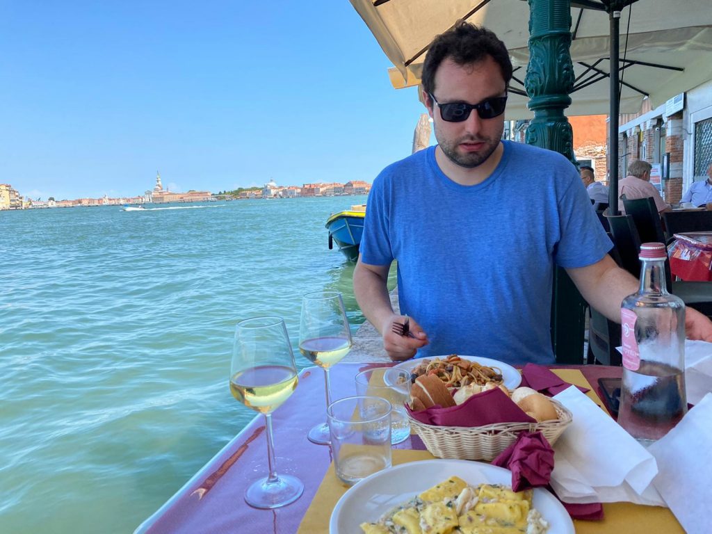 Im Süden Venedigs liegt die langgezogene Insel Giudecca. Mit dem Wasserbus setzt man easy in wenigen Minuten von der Hauptinsel über den Canale della Giudecca und genießt etwas (relative) Ruhe abseits der Touristenmassen. Das La Palanca liegt direkt am Kai. An kleinen Tischen sitzt man am Wasser und genießt den traumhaften Blick auf die Stadt. Perfekt für ein entspanntes Mittagessen und ein Glas frischen Weißwein. Besonders zu empfehlen ist hier das Schwertfischcarpaccio. Der hauchdünn aufgeschnittene rohe Fisch kommt nur mit etwas Zitronenzeste und Olivenöl und zergeht auf der Zunge. Auch die hausgemachte Pasta mit Fisch oder Muscheln nach Marktangebot ist ein Traum. Und preislich liegen die Gerichte alle noch unter 20 Euro. Was will man mehr?